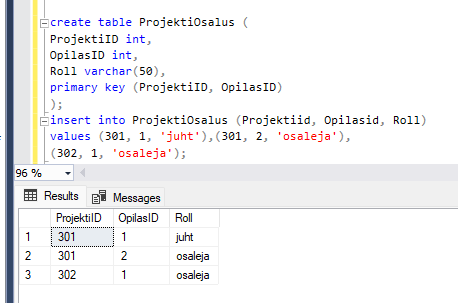 - Erinevalt ühe veeru primaarvõtmest ühendab komposiitvõti kaks või enam veergu, et tagada unikaalsus.