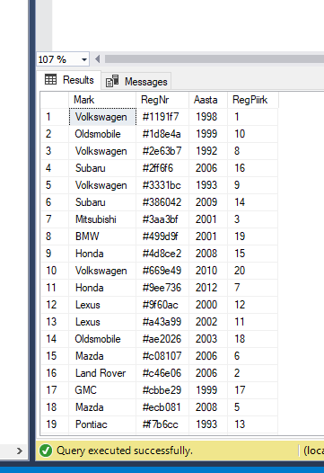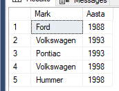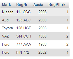 Insert into Auto (Mark, RegNr, Aasta, RegPiirk)