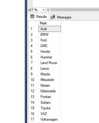 1. See valik näitab ainult autosid, mille mark algab N-ga.