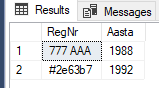 Update Auto set RegNr='333 FAQ' where RegNr='#2e63b7'