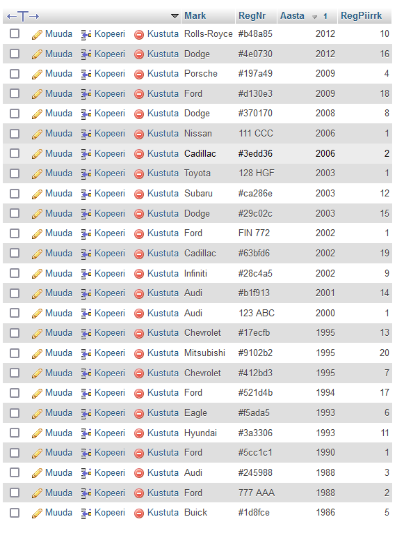 Järjesta autod tootmisaasta järgi kahanevasse järjekorda
