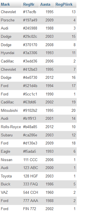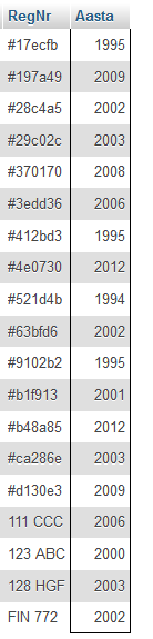 Väljasta enne 1993. aastat toodetud autode registrinumbrid tähestiku järjekorras