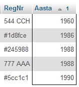 Select RegNr, Aasta from Auto where Aasta<1993 order by Aasta;