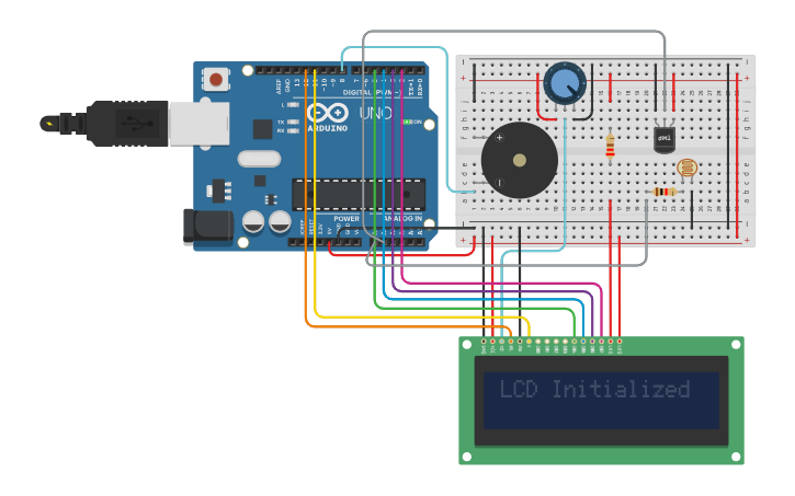 Kui temperatuur tõuseb 30 kraadini või valgust on liiga vähe, lülitub sisse häiresignaal (SOS-heliga). Ekraanil kuvatakse anduridata: ülemisel real temperatuur, alumisel valgustase. Ekraani sisse- ja väljalülitamist juhib potentsiomeeter. Andmed saadakse temperatuuriandurilt ja fotoresistorilt.