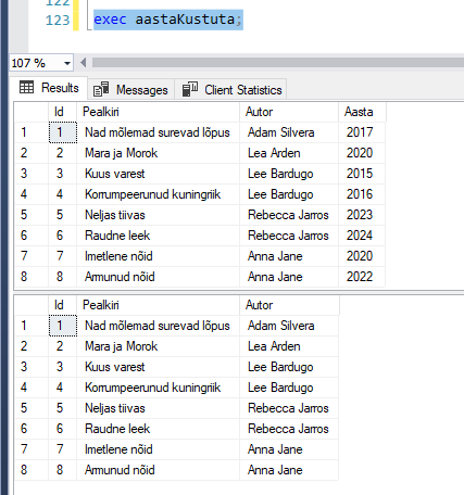 – Protseduur, mis kustutab raamatu pealkirja, autori ja aasta.
