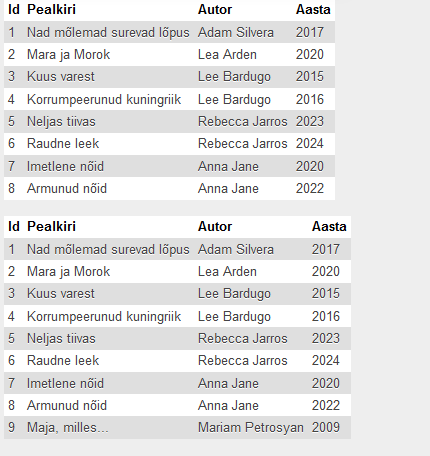 insert into Raamatatud(Pealkiri, Autor, Aasta)