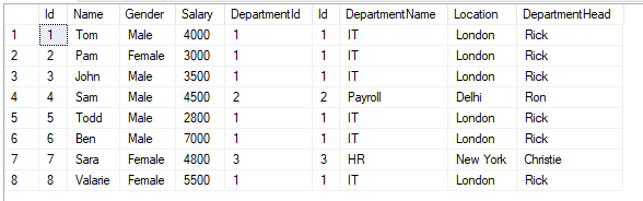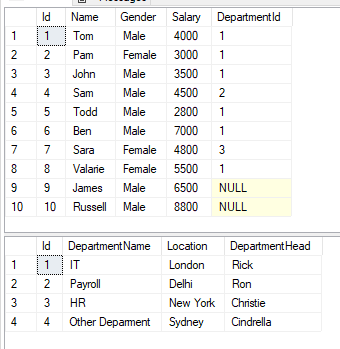 --JOIN Select * from Employees join Department on Employees.DepartmentId=Department.Id