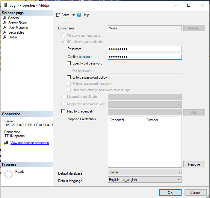 Kasutaja on ühendatud andmebaasiga