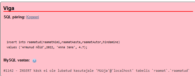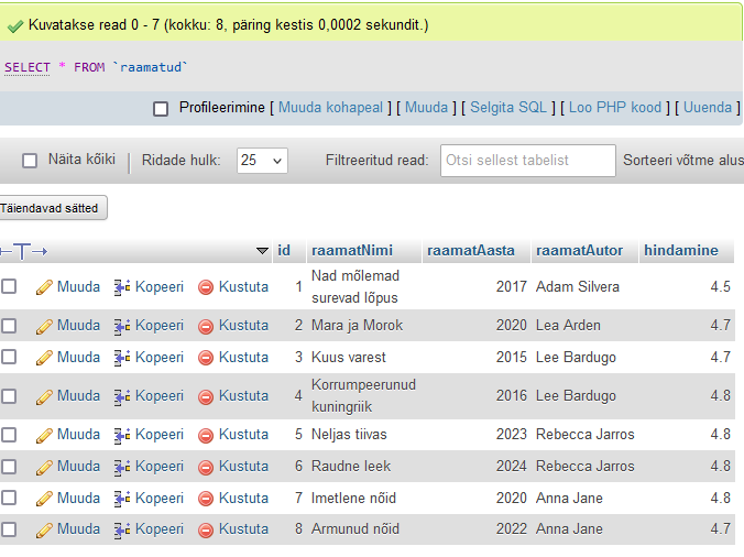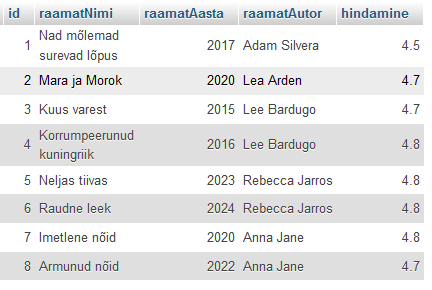 create table Raamatud(