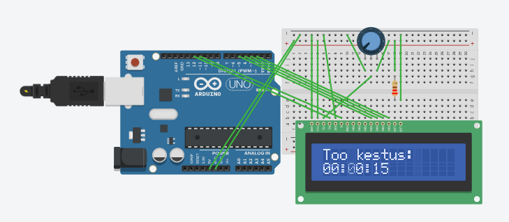 Koodi kirjutamine, virtuaalse skeemi loomine koodi testimiseks ja valmis tulemus päris skeemil.