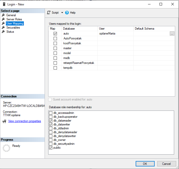GRANT select on auto to opilaneMariia; GRANT Update on auto to opilaneMariia; DENY DELETE ON auto TO opilaneMariia;